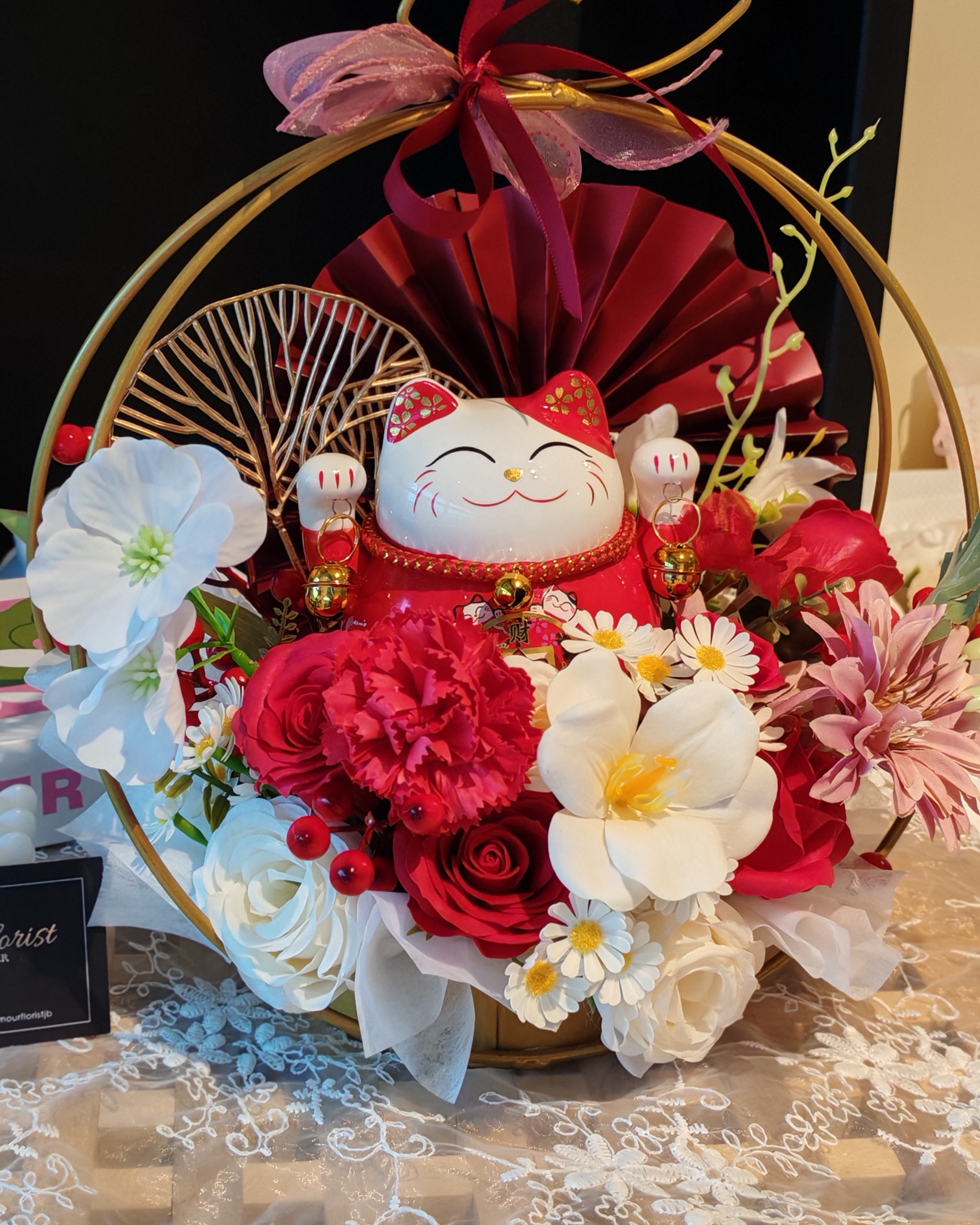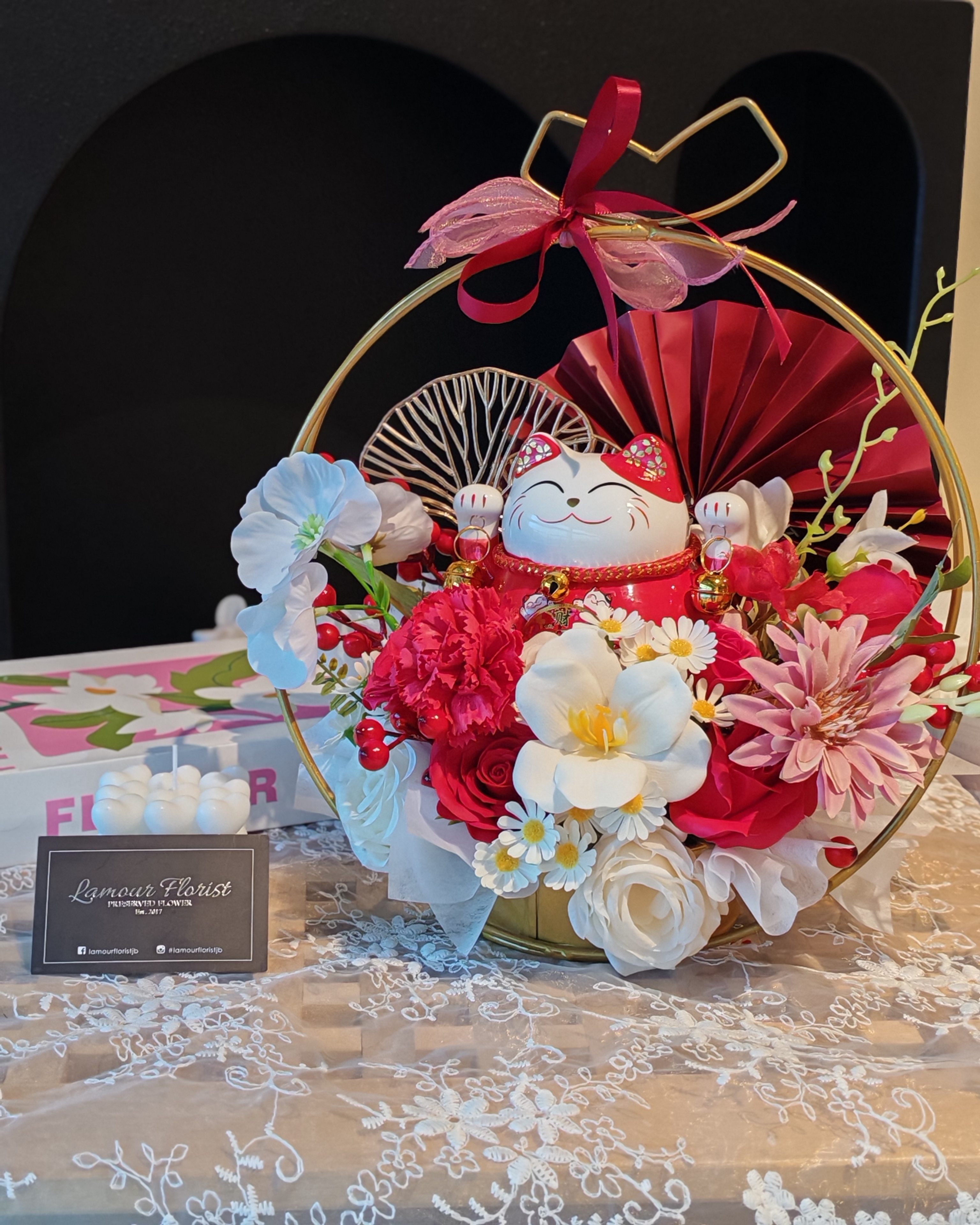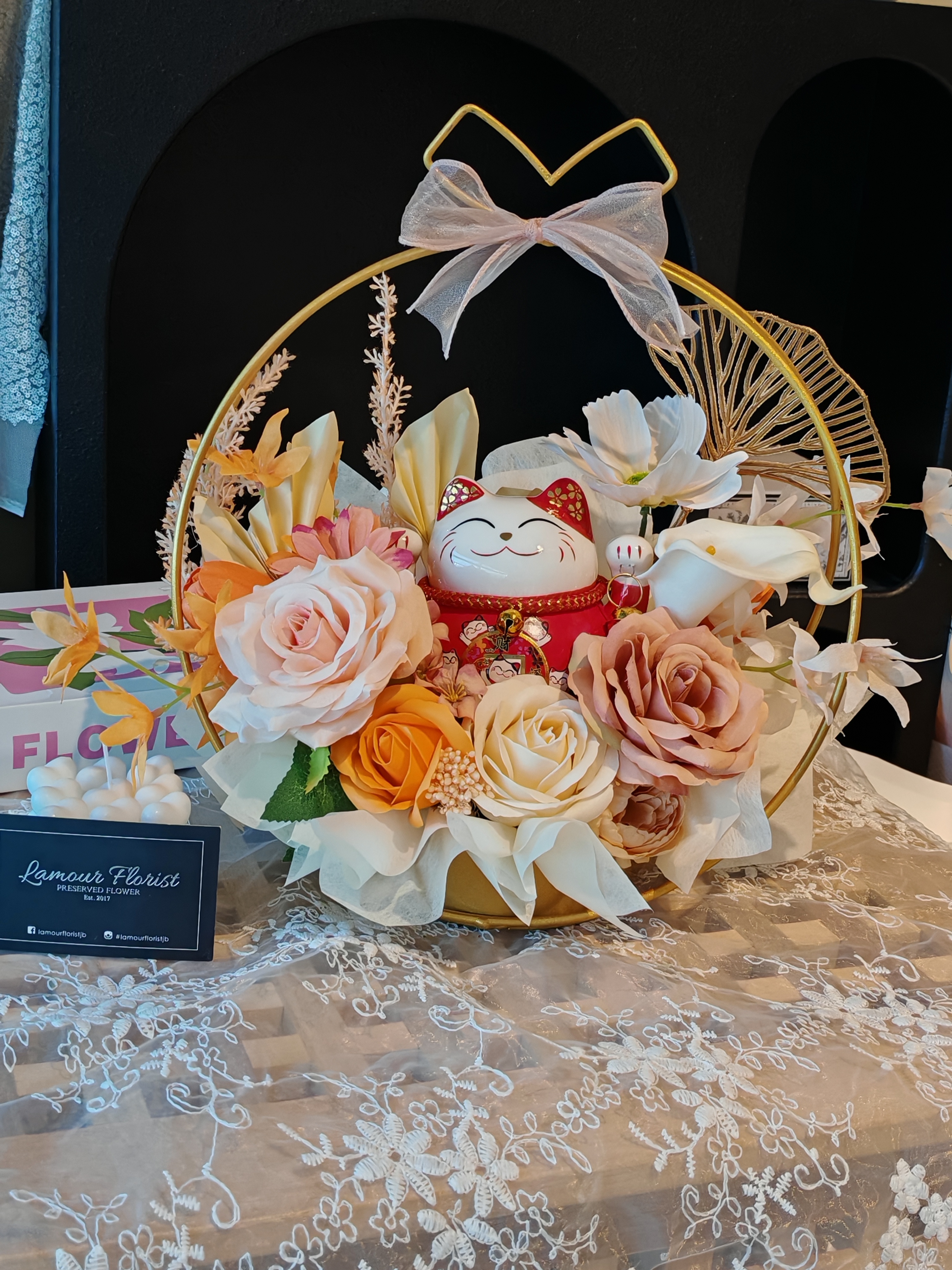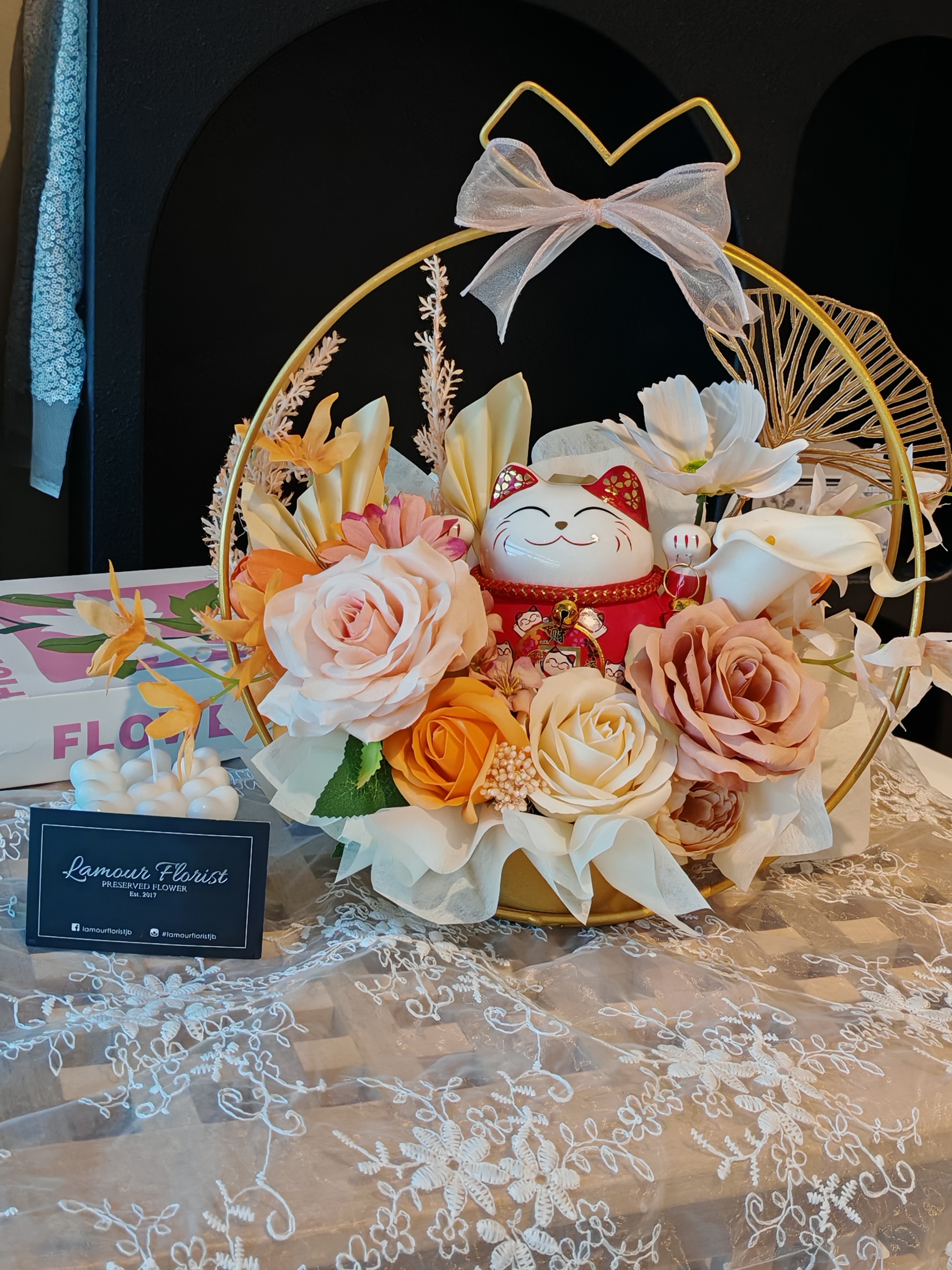 MAIN FLOWERS Mixed artificial flowers and rose soapflower. PRODUCT LIFESPAN Over 3 years. PRODUCT SIZE Approx. 30cm X 30cm Free printed greeting card please remark your messages during checkout.