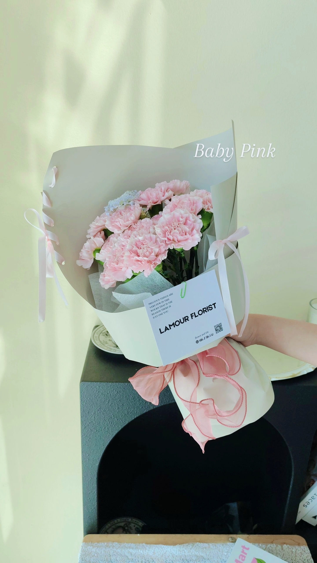 Fresh Carnation Bouquet – A Classic Gift for Mother’s Day Celebrate the love and warmth of motherhood with our Fresh Carnation Bouquet, specially arranged for Mother’s Day. Known for their long-lasting beauty and delicate charm, carnations symbolize admiration, gratitude, and deep affection—perfect for showing how much you care. This hand-tied bouquet features vibrant, farm-fresh carnations in a mix of soft and cheerful hues, making it a heartfelt gift that speaks volumes. Order now for Mother’s Day delivery and surprise Mom with fresh flowers she’ll adore. STEM INCLUDED : 10-12 stalks fresh pink carnation SIZE: Approx. 27*50cm
