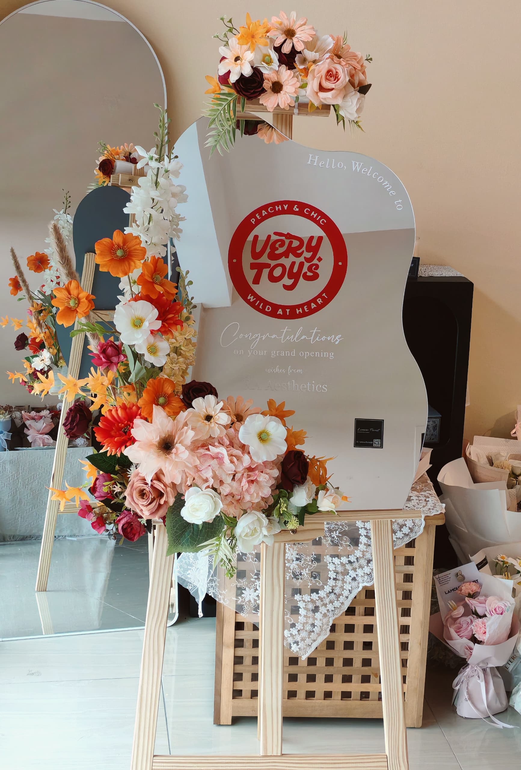 INCLUDED 150CM height wooden stand with Artifical flower arrangements on the mirror. PRODUCT LIFESPAN More than 3 years. BESPOKE/ CUSTOMISATION Please discuss with us through WhatsApp : 60167316332 for details arrangement. DELIVERY Only available for JB area delivery service.