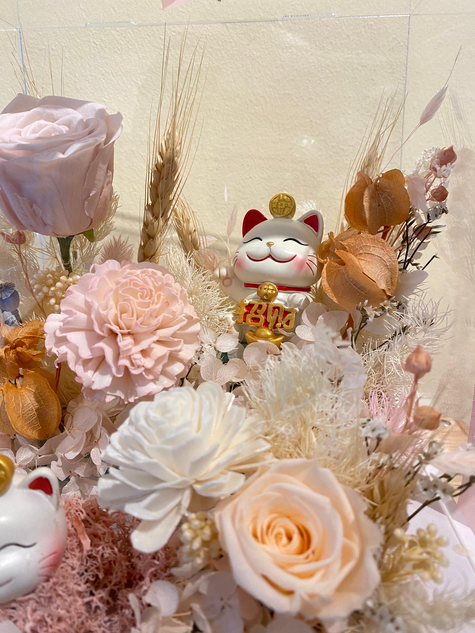 Lucky Cat Preserved Flowers Crystal Box_M20