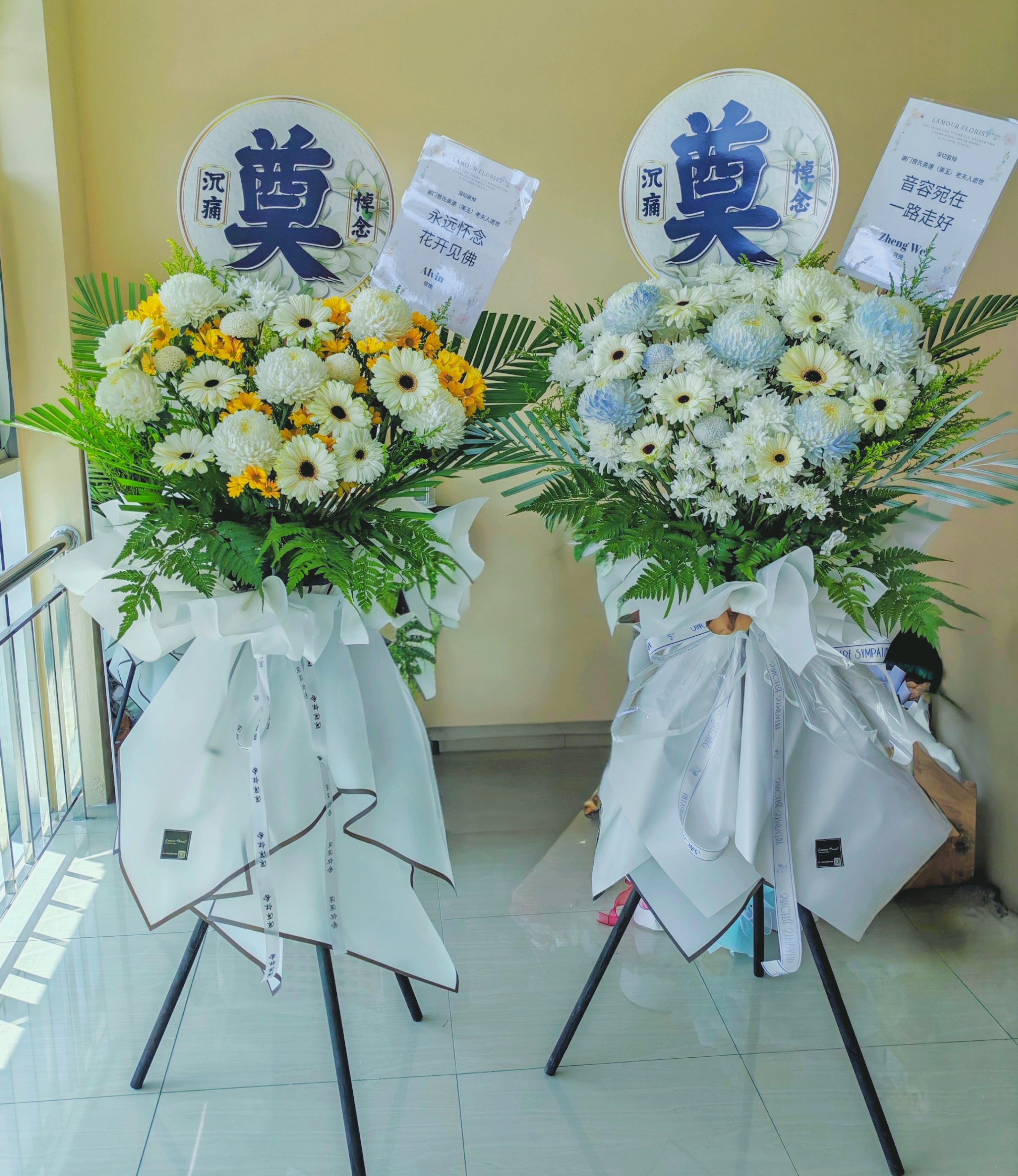 MAIN FLOWERS Gerbera, Taiwan Mum, Chrysanthemum Pom Pom, Yellow palm leaf, paku leaf and peacock flowers. PRODUCT LIFESPAN 3-4 days with proper care SAME DAY DELIVERY AVAILABLE FOR ORDER PLACED BEFORE 3PM AFTER 3PM WILL PROCEED DELIVERY NEXT DAY. DELIVERY AREA JB areas include Tiong Hua Memorial Park and Nirvana Memorial Center Skudai and other residential houses.